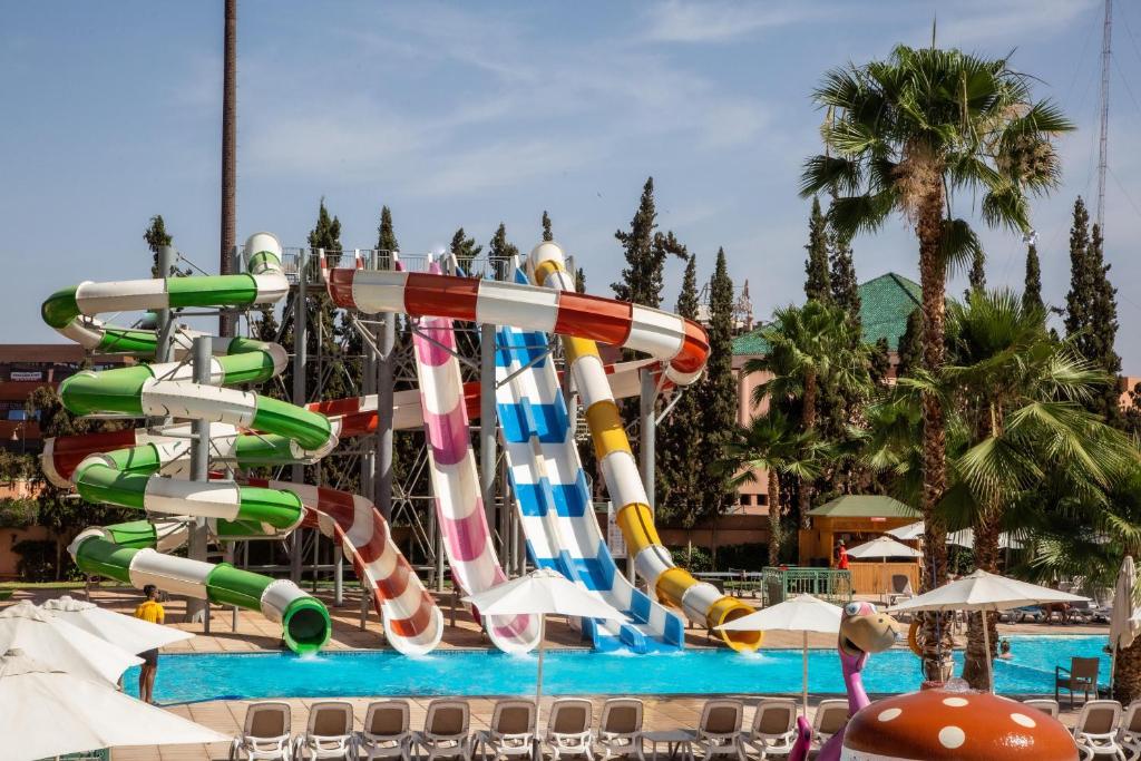 Hotelul Rose Aqua Park se află la 20 de minute de mers pe jos de Jemaa El Fna. Oferă 2 piscine (incălzite iarna), un parc acvatic și un centru spa de balneoterapie cu saună și hamam. Aeroportul Internațional Marrakech-Menara este la 10 minute de mers cu mașina de hotel.