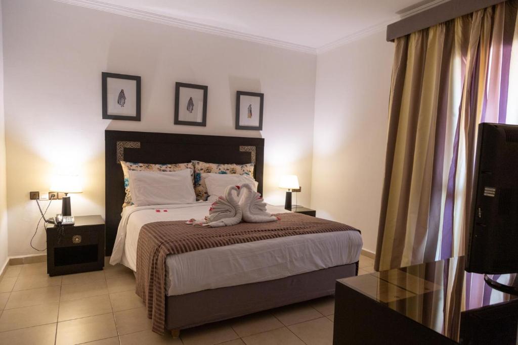 Decorate in culori tradiționale marocane, camerele Hotelului Rose Aqua Park sunt amplasate in jurul unei curți interioare centrale. Fiecare are balcon sau patio privat și TV LCD cu canale prin satelit.