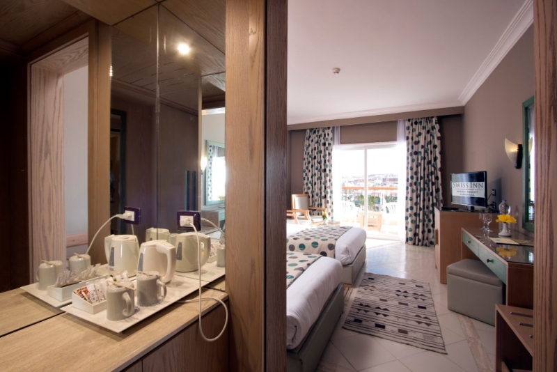 The hotel Regina Resort and Aqua Park Hurghada**** is located approximately 300 m from a beach. There is a shuttle between the hotel and the airport (for a fee). The beach is patrolled by a lifeguard. Here, there are sun loungers, cushions, sun umbrellas and beach towels available. Cold drinks are served at the bar on the beach. The hotel has a 24h reception, a lobby bar, Wi-Fi (for a fee), internet access, cash machine, a hairdresser, a jacuzzi as well as a first aid kit. In the outdoor area you will find a pool (open all year), where sun loungers and pool towels are available for free. For children there is also a children's pool with 6 water slides. For your entertainment, the hotel offers a disco. For the young hotel guests there is a playground. You can store your luggage in the hotel's storage room. There is also a laundry and ironing service available at an additional cost to customers. Ironing equipment can also be rented at the hotel for a fee. If necessary, you can contact the medical centre (for a fee). For conventions and other business meetings, the hotel offers a (auditorium-style) conference area with printer as well as overhead projector. If you want to explore the holiday region, you can use the car rental service close to the hotel (extra fee). Due to its barrier-free facilities , such as barrier-free entrances, the hotel is also suitable for wheelchair users. Catering As catering services the hotel offers all-inclusive and breakfast only. Breakfast is offered from the buffet. Lunch and dinner are also served from the buffet. For the meals, there are a restaurant (Italian dishes) and several bars as well as the pool bar. The drinks menu of the hotel includes water. Distances