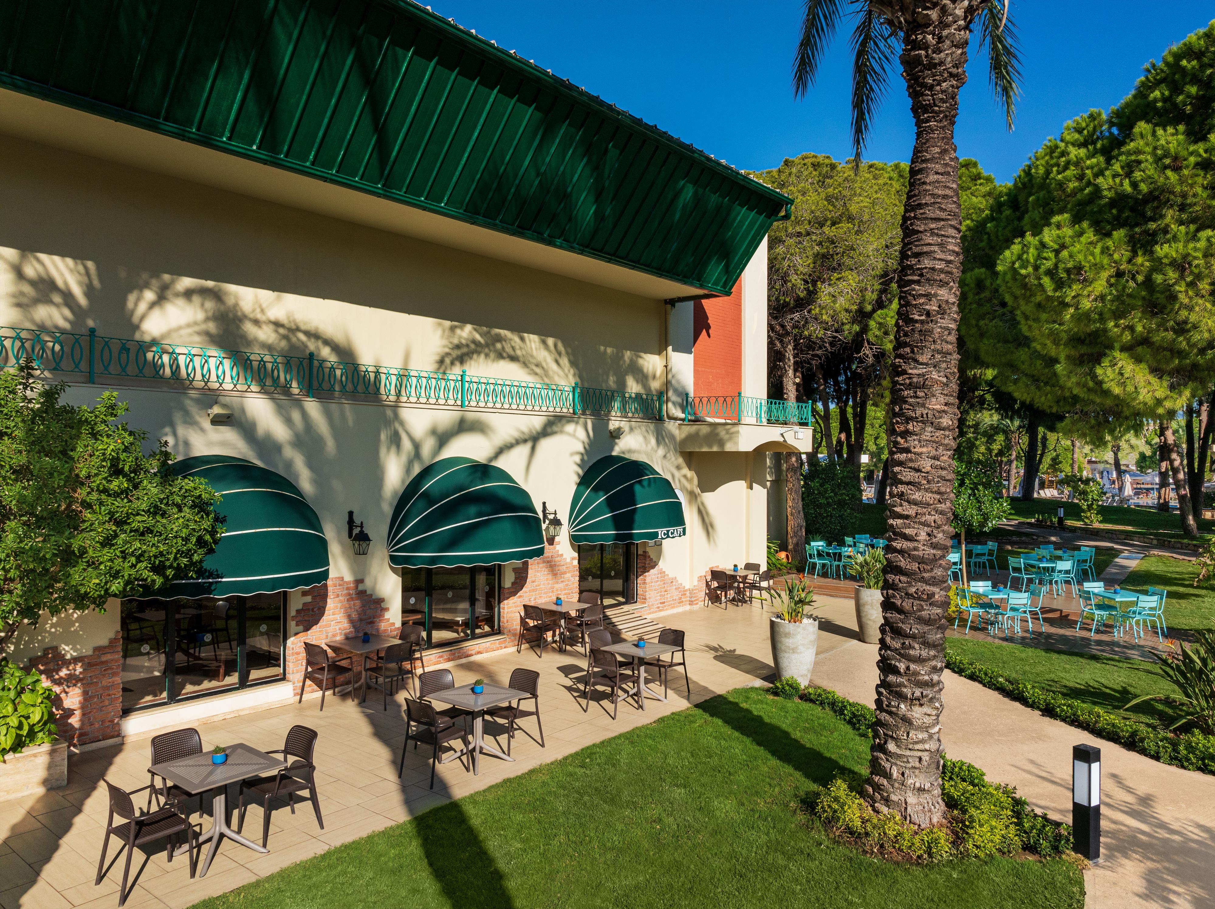 Complexul de vacanta de lux IC GREEN PALACE, foarte popular, ofera confort si comoditate oaspetilor sai si este situat chiar langa o frumoasa plaja cu nisip, intr-o gradina mare cu o piscina de 4.000 m2. Transportul in centru cu magazine si restaurante poate fi asigurat cu microbuze locale.