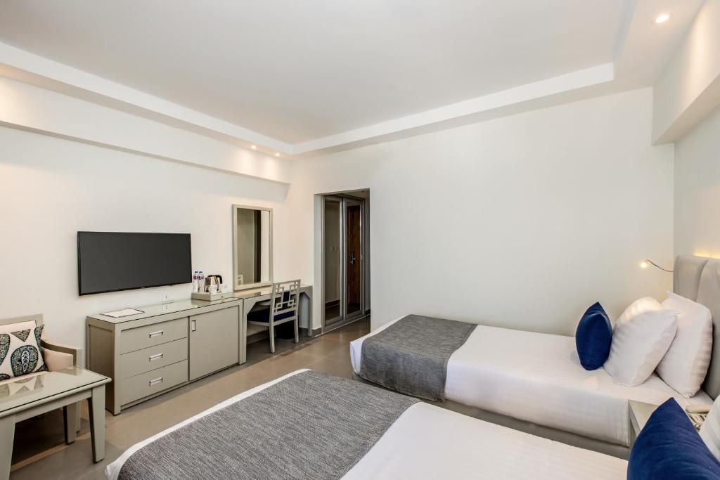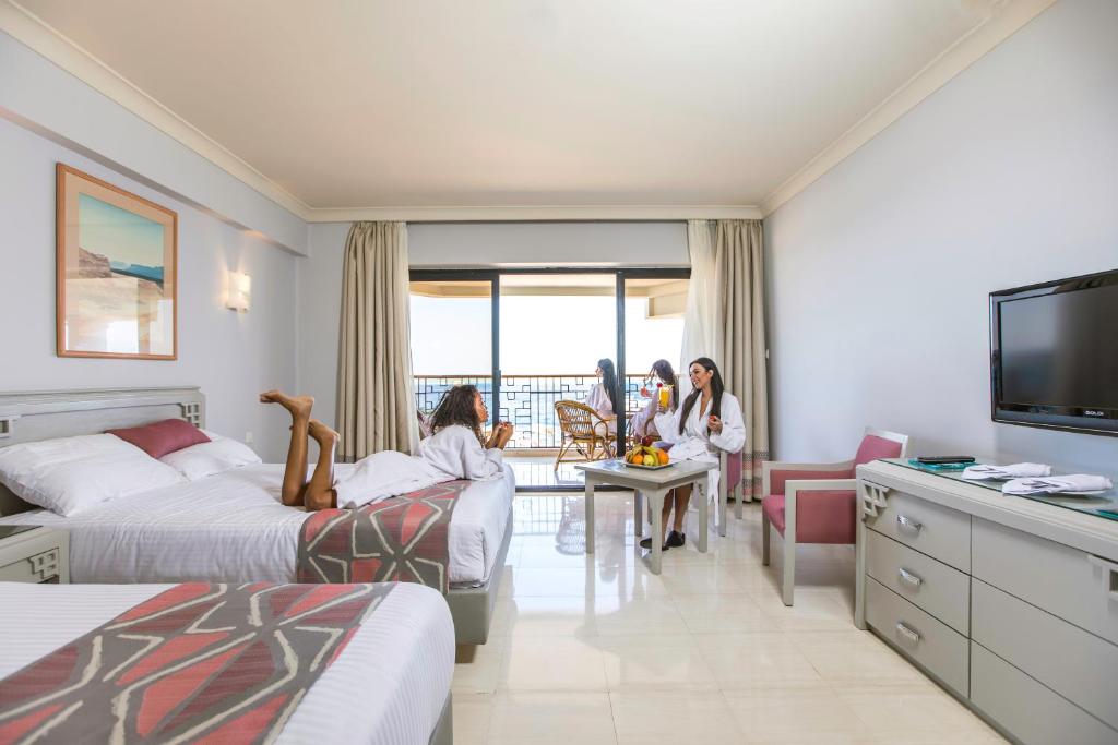 Camerele au aer condiționat, TV prin satelit, minibar, baie privată cu o cadă, precum si balcon sau terasă cu vedere la mare sau la piscină. Unele includ o zonă de lounge cu canapele.