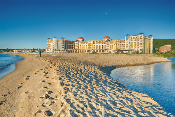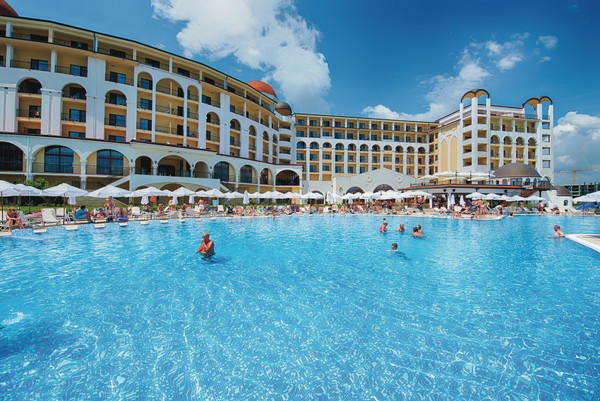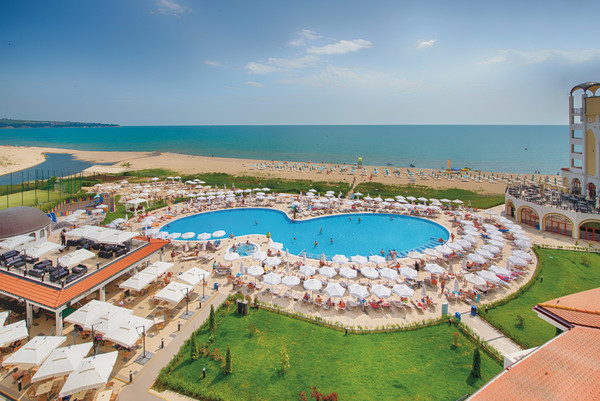 Hotelul Alua Helios Bay este situat pe plaja din Obzor, într-o zonă plină de vegetaţie.