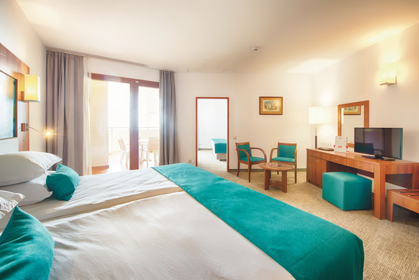 Camerele hotelului sunt dotate cu baie proprie cu duş, uscător de păr, telefon, mochetă, aer condiţionat centralizat şi încălzire, satelit TV, mini frigider, facilitati pentru pregatirea ceaiului, seif (contra cost), balcon sau terasă. Majoritatea camerelor sunt cu vedere la mare.