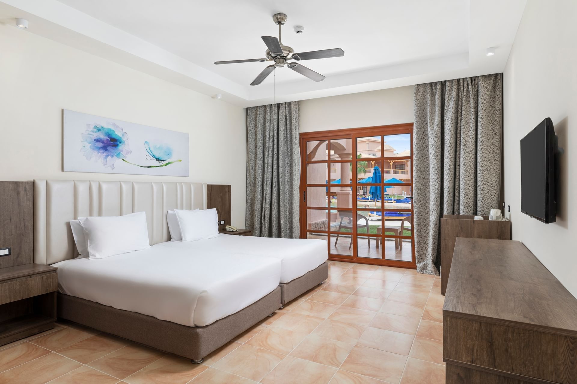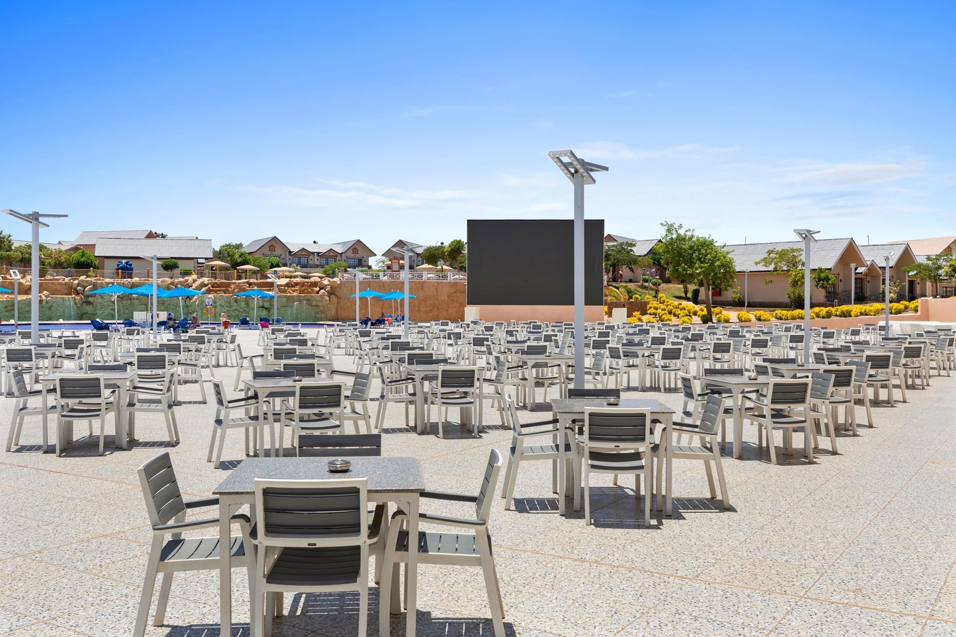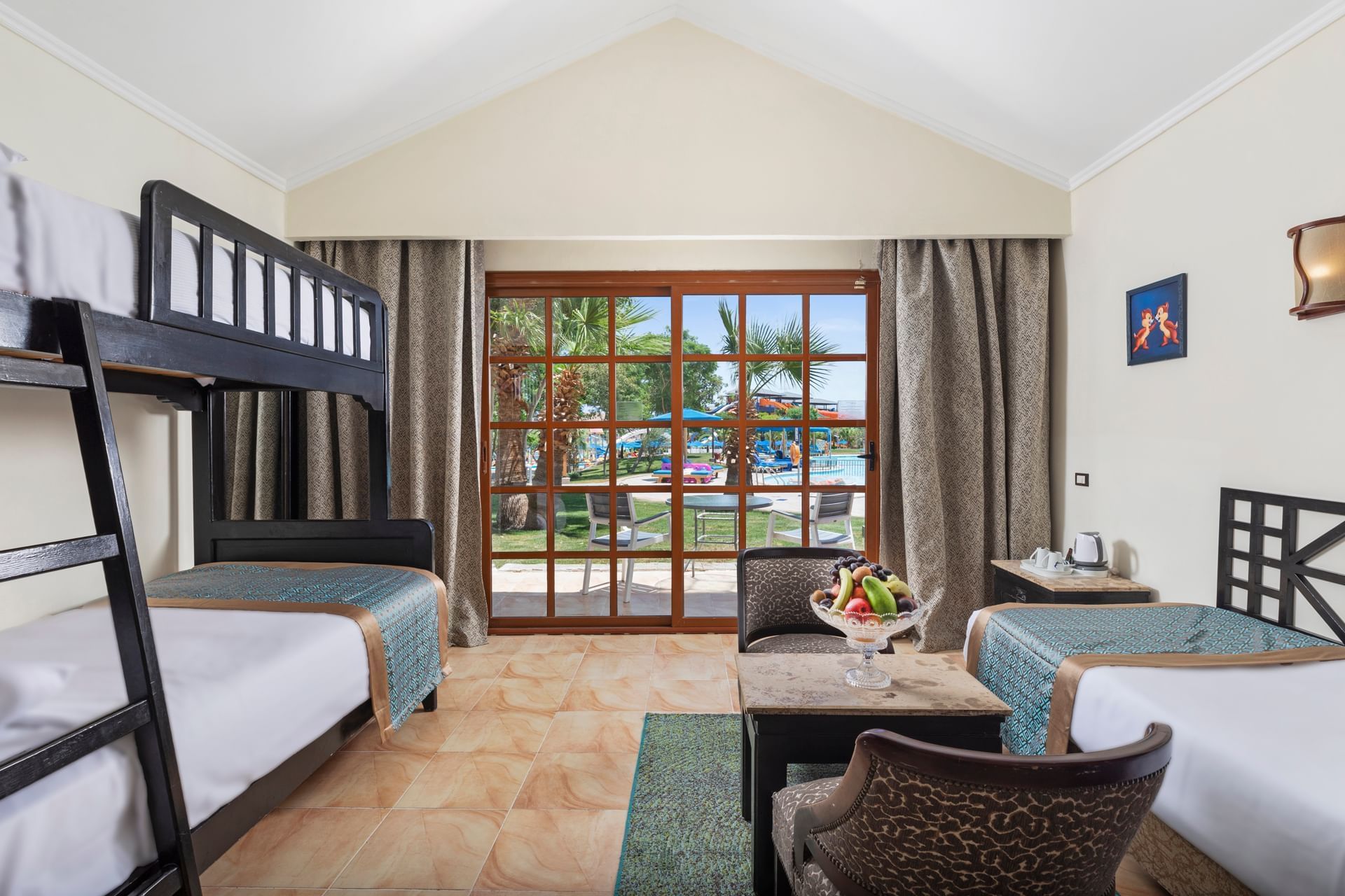 The hotel Pickalbatros Jungle Aqua Park Resort Neverland Hurghada is located approximately 900 m from a beach. The city centre is around 25 km away. There is a shuttle between the hotel and the airport (for a fee). The beach is patrolled by a lifeguard. Here, there are cushions, sun umbrellas and beach towels available. At the beach there is a bar serving refreshing drinks. To reach the beach a shuttle is provided. The air-conditioned hotel has a 24h reception (check-in is possible around the clock), a lobby, Wi-Fi, internet access, a lift, a supermarket and other shops, a boutique, cash machine, a hairdresser, a jacuzzi, showers and changing rooms, a first aid kit as well as parking spaces. In the outdoor area of the property you will find a garden as well as a seasonally heated pool (open all year), where sun loungers, sun umbrellas and pool towels are available for free. There is also a separate children's pool with 35 water slides. Furthermore, you can relax outdoors on a terrace. For your entertainment, the hotel offers a cinema, a theatre and a disco. For the young hotel guests there is a playground. For very young guests, kid`s chairs can also be provided. You can store your luggage in the hotel's storage room. There is also a laundry service available at an additional cost to customers. For your comfort, in addition to the concierge service the hotel page will ensure you are looked after. If necessary, you can contact the medical centre at any time (for a fee). Guests at the accommodation can get a wake-up call from the hotel personnel. At the reception, tickets are offered for excursions in the area. Due to its barrier-free facilities , such as separate, barrier-free entrances and wheelchair accessible rooms, the hotel is also suitable for wheelchair users. Catering As catering services the hotel offers all-inclusive, full board and self-catering. Breakfast is offered from the buffet. Enjoy your lunch from the buffet. Dinner is also served as a buffet, as a set meal or à la carte. For the meals, there are a buffet restaurant (Italian, calorie-reduced and vegetarian dishes) and several bars as well as a 24h snackbar. Appropriate clothing is required for lunch and dinner. Distances