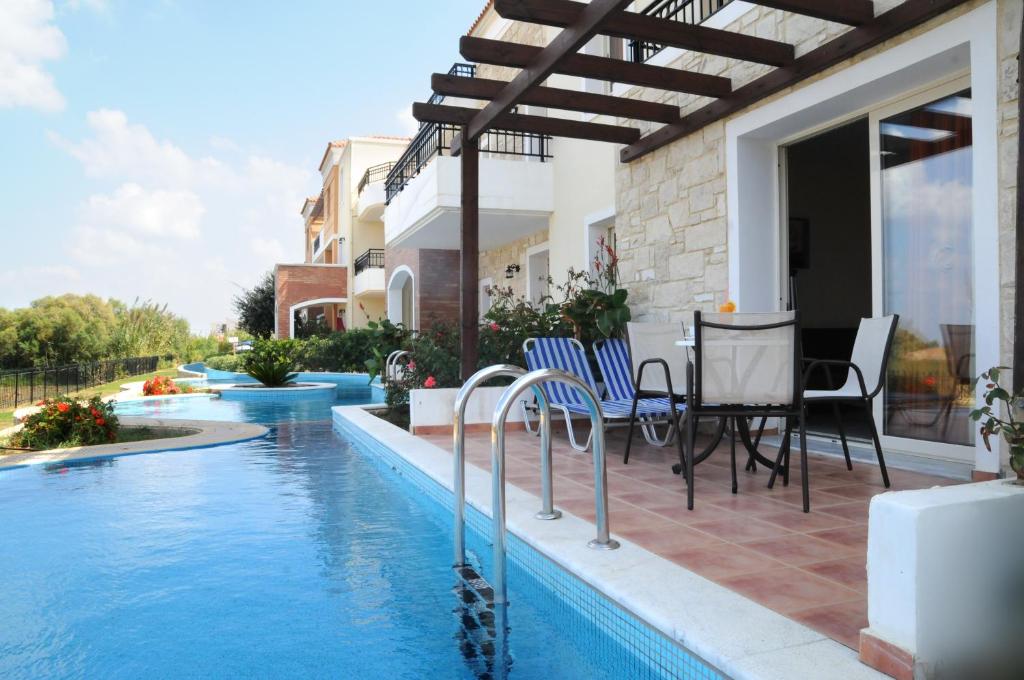 est hotel este construit aproape de mare, într-una dintre zonele cele mai pitorești din Creta. Oferă camere elegante, cu balcoane cu vedere la grădină, mare sau la cele 3 piscine.Orașul Chania este la doar 25 minute, iar satul plin de viață Platanias se află la câteva minute cu mașina. Există serviciu de transport regulat, iar stația de autobuz se află chiar lângă hotelul Chrispy Waterpark Resort.